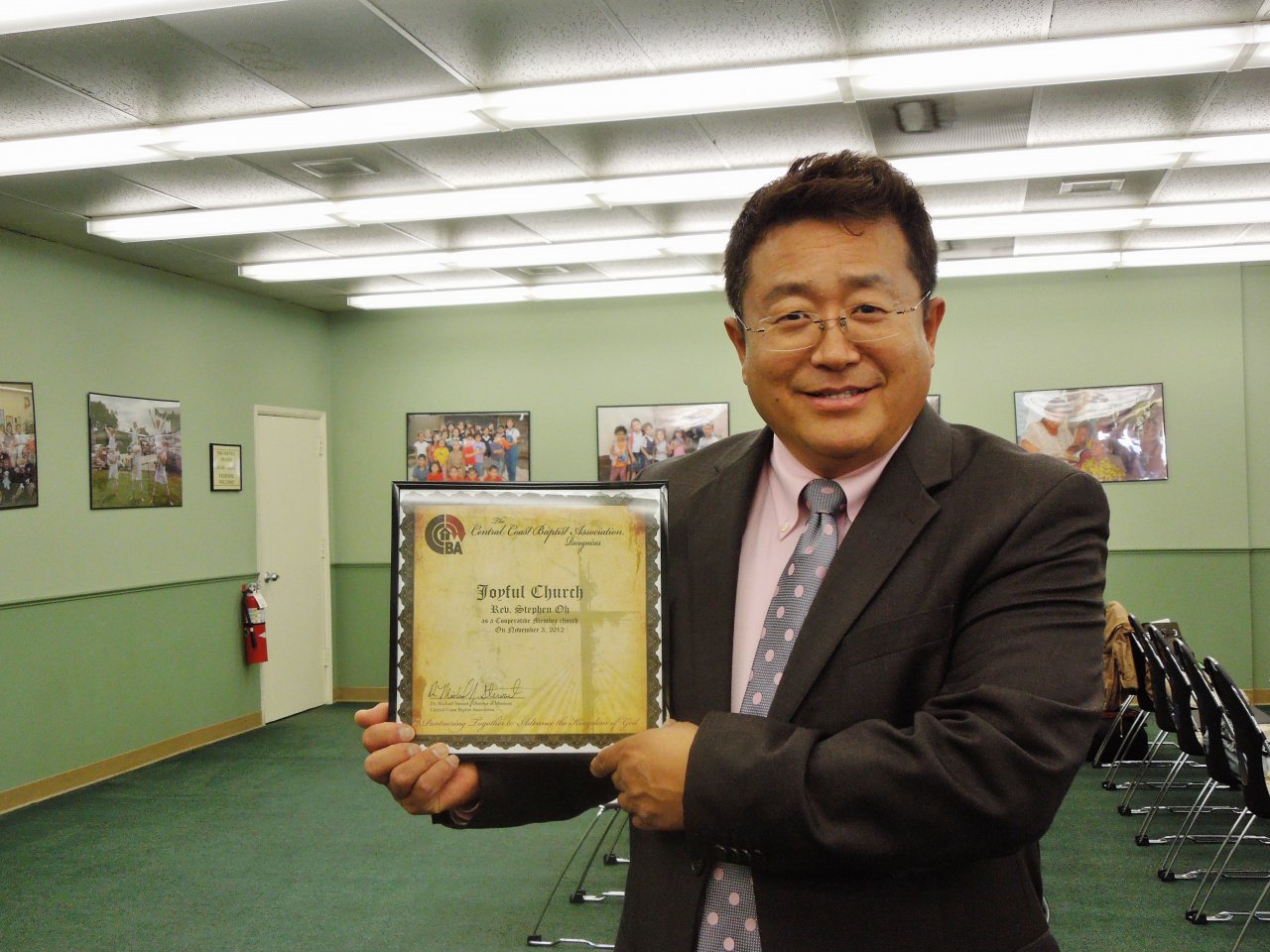 미국 지방회 (Central Coast Baptist Association) 미션 컨퍼런스에서 회원교회로 인준받은 인준서를 들고 행복해 하시는 행복한 목사님