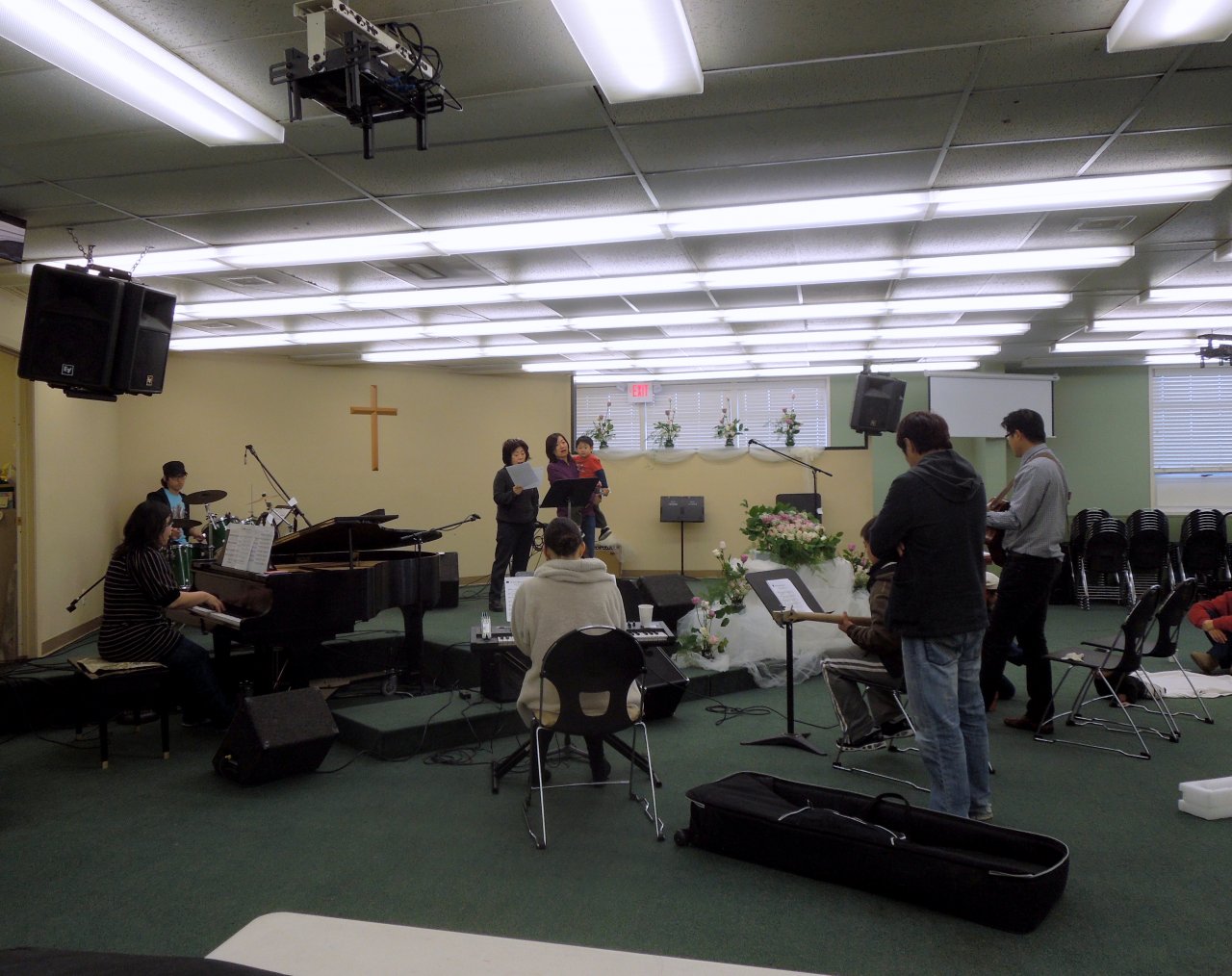 주일 찬양을 위하여 토요 새벽 예배후 맹 연습중이신 찬양팀